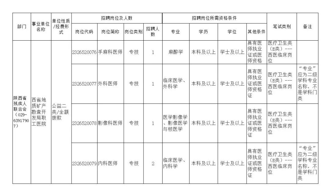 1.2023年陕西省省属事业单位公开招聘工作人员岗位表